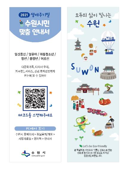 수원시가 시민들에게 제공하는 지원 정책을 정리한 책자 「2021 생애주기별 수원시민 맞춤 안내서」를 제작했다.