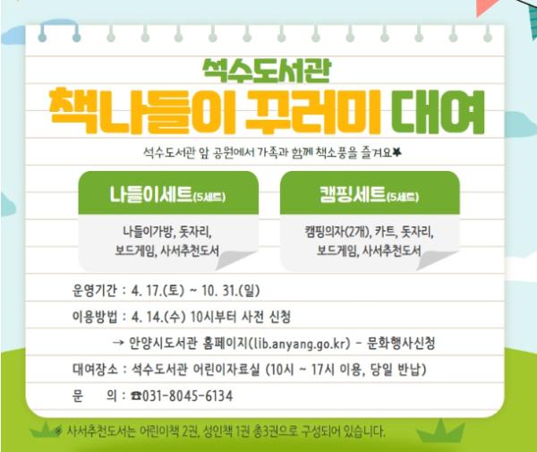 [뉴스시선집중, 박광옥기자] 안양시립석수도서관이 봄을 맞이해 4월 17일부터 책나들이 꾸러미를 시민들에게 빌려준다.