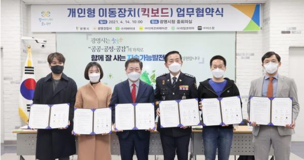 이번 협약으로 광명시와 광명경찰서, 전동킥보드 대여사업자(4개사)는 전동킥보드의 안전이용을 위한 환경조성에 상호 협력하기로 했다.