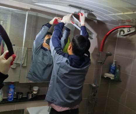 이날 대림제지 노조위원회 강봉주 위원장을 비롯한 노조회원 7명은 대상자인 어르신이 인근 주간보호시설을 이용하는 시간을 이용하여 코로나19 방역수칙을 준수한 가운데 노후된 벽지와 장판 교체, 낡은 형광등을 LED 전등으로 전면 교체, 유리창과 창틀·가스렌지·후드에 찌든 때 청소 등 주거환경 개선을 위한 활동을 실시했다.