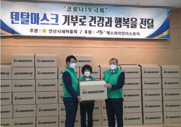이번 마스크 나눔은 ㈜에스와이인더스트리(대표 이정환)에서 안산시새마을회로 후원한 덴탈마스크를 안산시에 기탁한 것으로, 추후 각 동 새마을지도자회와 새마을부녀회를 통해 관내 저소득층 및 어르신들에게 배부될 예정이다.