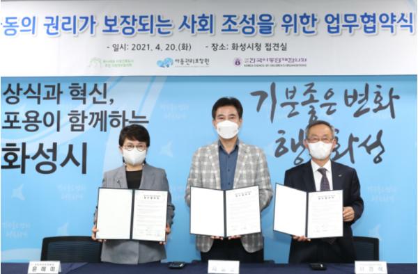 [뉴스시선집중, 박광옥기자] 유니세프 아동친화도시 추진 지방정부협의회 대표 단체인 화성시는 20일 아동권리보장원, 한국아동단체협의회와 ‘아동의 권리가 보장되는 사회조성을 위한 협약’을 진행했다고 밝혔다.