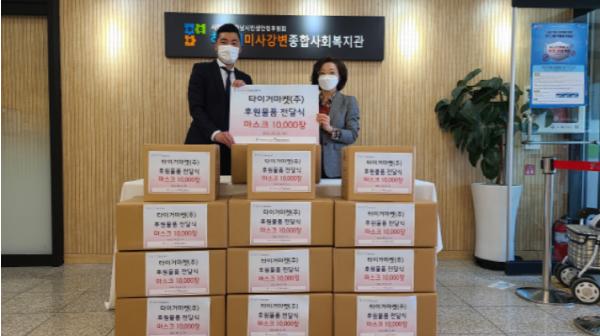 조혜연 관장은“코로나의 재확산으로 개인위생과 면역력이 더욱 중요해지고, 마스크가 생필품화 되면서 경제적으로 부담을 느끼는 이웃들을 위해 선한 영향력을 나누어 주신 타이거마켓(주)에 진심으로 감사드립니다.”며, “복지관은 코로나19를 극복할 수 있도록 방역을 더욱 더 철저히 하고, 지역사회 이웃들이 건강하고 행복한 삶을 향유할 수 있도록 노력하겠습니다.”라고 말했다.