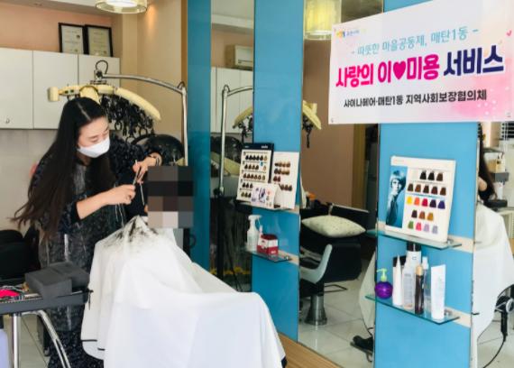 오늘 진행한 이미용서비스는 매탄1동지역사회보장협의체에서 발굴한 복지자원으로 마스크 착용, 손소독 등 개인방역 수칙을 철저히 준수한 가운데 진행하였다.