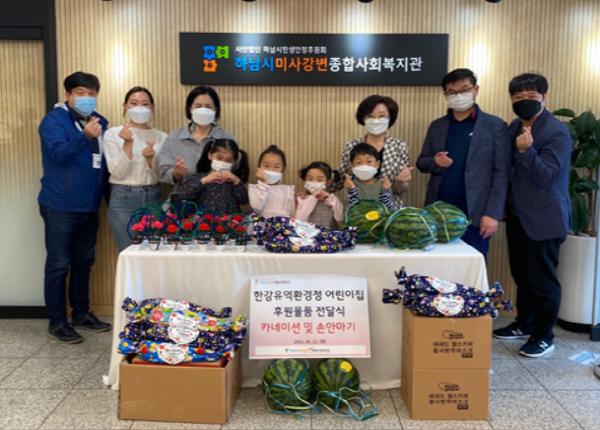 [뉴스시선집중, 이학범기자] 하남시는 한강유역환경청 한강직장어린이집이 5월 가정의 달을 맞이하여 지역 내 소외·취약계층 어르신들을 위해 하남시미사강변종합사회복지관에 아이들이 직접 만든 카네이션, 손 안마기, 마스크 400개, 과일들을 전달했다고 밝혔다.