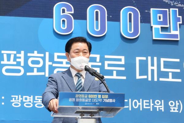 광명시는 12일 광명동굴 빛의 광장에서 ‘광명동굴 입장객 600만 명 돌파 기념행사’와 ‘광명평화동굴 도약 선포식’을 개최했다.