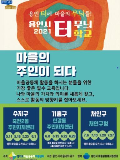 교육에는 처인·기흥·수지 등 각 구별로 25명씩 총 75명이 참여할 수 있으며, 현재 시 마을공동체지원센터에서 모집하고 있다.