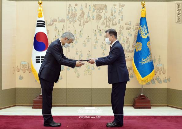 문 대통령은 임명장 수여 후 환담에서 “청문회 과정에서도 드러났듯이 평생을 모범적으로 살아온 법조인으로, 뛰어난 능력을 갖추고 있을 뿐 아니라 법원 내부의 신망도 높다”고 말했다.