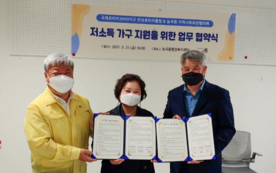 [뉴스시선집중, 이학범기자] 능곡동 지역사회보장협의체는 지난 21일 국제로타리 3690지구 연성로타리클럽과 능곡동 저소득 가구 지원을 위한 후원 협약을 체결했다.
