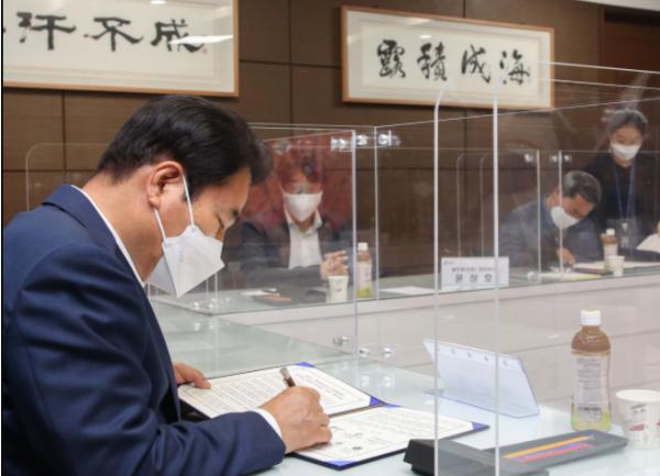 이날 협약식에는 백군기 용인시장, 이상욱 용인시개인택시조합장, 윤상호 용인운수 대표이사 등 법인택시 4개사 대표, 이의도 NH농협은행 용인시지부장이 참석했다.