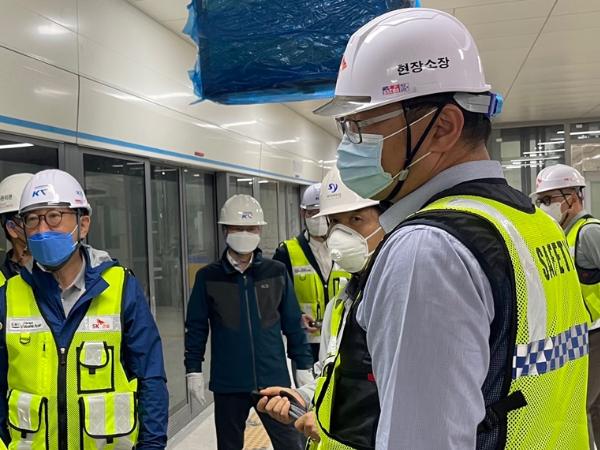 [뉴스시선집중, 이학범기자] 김한정 의원은 5월 24일 오후, 지하철 4호선 진접선의 별내별가람역과 식송마을 유치선 공사 현장을 방문하여 공정 진행상황과 종합시험운행 준비 현황을 점검하고, 공사 막바지 작업에 한창인 현장 근로자들을 격려하였다.