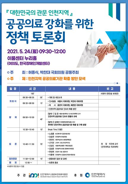 토론회는 더불어민주당 허종식?박찬대 의원이 공동 주최하고, 인천시 공공보건의료지원단가 주관했으며, 인천시가 후원했다.