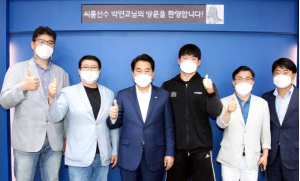 [뉴스시선집중, 이학범기자] 백군기 용인시장은 24일 내년부터 용인시의 이름을 걸고 활동할 씨름 유망주 박민교 선수를 만나 격려하는 시간을 가졌다.