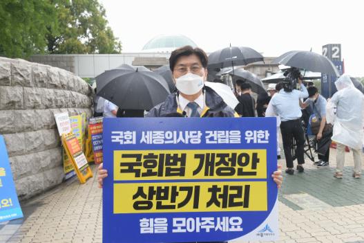 이춘희 시장은 성명서에서 “여야 합의로 확보한 국회 세종의사당 설계비는 147억 원에 이르지만 단 한 푼도 집행하지 못하고 있다”며 “국회가 이번 임시국회에서 국회 세종의사당 설치를 담은 국회법 개정안을 반드시 처리해야 한다”고 촉구했다.