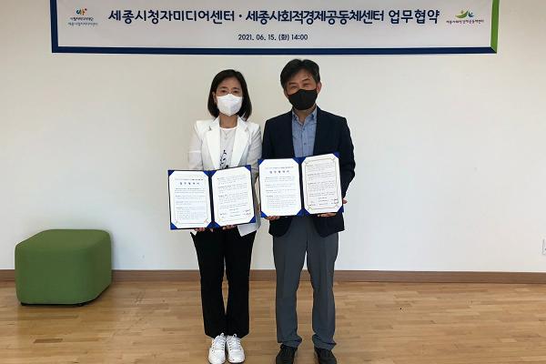 [뉴스시선집중, 조선호기자] 세종사회적경제공동체센터와 세종시청자미디어센터가 15일 세종시청자미디어센터에서 시민의 미디어 역량강화 및 마을활동 활성화를 위한 업무협약을 체결했다.