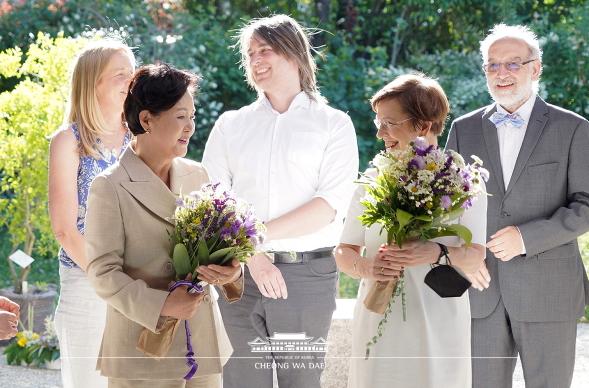간담회를 마친 김 여사는 새활용한 친환경 운동화를 슈미다우어 여사에게 선물하였고, 슈미다우어 여사는 매우 기뻐하며 마음에 든다고 감사의 인사를 건넸다.