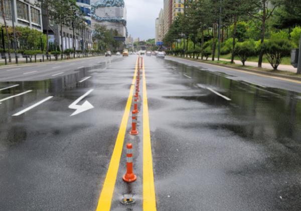 수원시는 다산공원에서 수원컨벤션센터 사거리, 센트럴파크로사거리에 이르는 460m 구간에 노면 빗물분사시스템과 빗물공급기 1개를 설치했다. 지난해 11월 공사를 시작해 최근 완공했다.