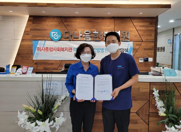 [뉴스시선집중, 이학범기자] 하남시미사강변종합사회복지관은 미사다나음한방병원(병원장 양요찬)과 지역사회연계와 네트워크 구축의 일환으로 미사강변대로60에 위치한 다나음한방병원에서 업무협약을 체결하였다.