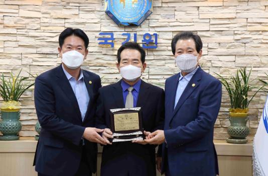 6월 16일(수) 오후 5시 30분 국기원 이사장실서 열린 ‘명예이사장 추대패 전달식’에서 전갑길 국기원 이사장은 정세균 전 국무총리에게 추대패를 전달하고, 태권도와 국기원 발전을 위해 협력할 것을 다짐했다.