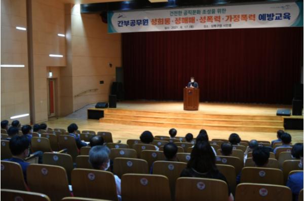 [뉴스시선집중, 김시훈기자] 안산시는 17일 상록구청 시민홀에서 5급 이상 간부공무원을 대상으로 ‘성희롱·성매매·성폭력·가정폭력 예방 교육’을 실시했다.
