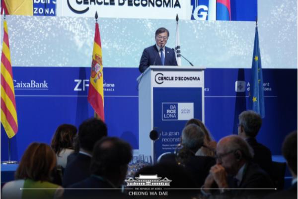 문 대통령은 개막 만찬 연설에서, “이제 협력을 잘하는 나라가 세계의 주인공이 될 것이다. 디지털·그린 경제에서 앞서가는 나라가 세계 경제를 이끌게 될 것이다”며 “스페인과 한국이 먼저 시작합시다. 우리가 힘을 모은다면 그 주인공이 될 수 있으리라 확신한다”고 말했다.