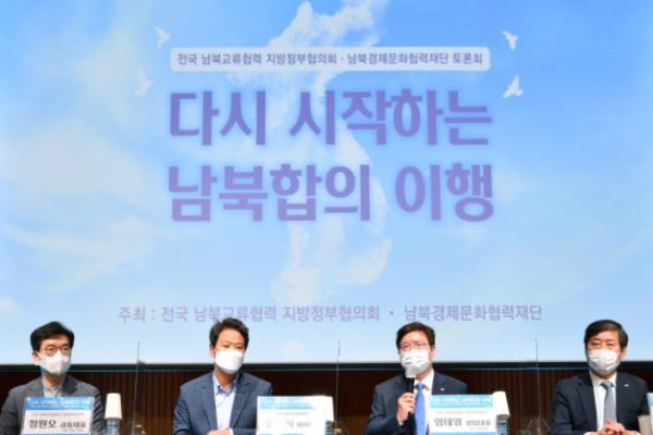 전국 남북교류협력 지방정부협의회 상임대표인 염태영 시장은 21일 서울 중구 대한상공회의소 국제회의장에서 열린 ‘다시 시작하는 남북합의 이행 토론회’ 개회사에서 “지방 정부들은 남북 민간협력을 이어가기 위해 지난 3월 남북교류협력 지방정부협의회를 출범시켰다”며 “협의회 출범은 지방정부 간 다층적인 교류로 남북 간 신뢰의 다리를 놓기 위한 노력의 산물”이라고 밝혔다.