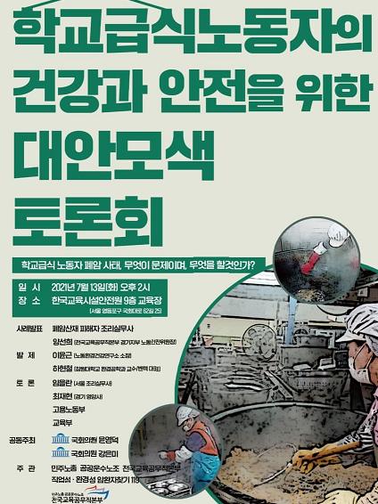한편 윤영덕 의원은 학교 급식노동자의 폐암으로 인한 산업재해 인정을 계기로 7월 13일(화) 한국교육시설안전원에서 ‘학교급식노동자의 건강과 안전을 위한 대안 모색 토론회’를 강은미 국회의원과 공동주최로 개최할 예정이다. /끝