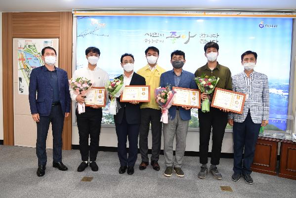 김 시장은 이날 ‘G-하우징’사업에 참여한 ㈜우미개발 홍진호·황형연 현장대리인과 공무 담당 등 직원 4명에게 시장 표창을 수여하고 감사의 뜻을 전했다.