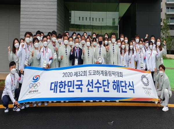 대한체육회(회장 이기흥)는 8월 9일 오전 11시 일본 도쿄올림픽선수촌 숙소동 앞 광장에서 2020 도쿄하계올림픽대회 대한민국 선수단 해단식을 개최했다.