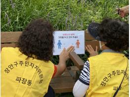 [뉴스시선집중, 윤금아기자] 수원시 장안구 파장동 주민자치위원회는 지난 24일, 코로나19 확산방지를 위해 관내 공원을 대상으로 시설물 점검을 실시했다.
