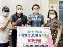 [뉴스시선집중, 윤금아기자] 수원시 장안구 정자3동 주민자치위원회는 지난 24일, 어려운 이웃을 위한 ‘사랑의 반찬 만들기’ 행사에 써달라며 후원금 60만원을 새마을부녀회에 전달했다.