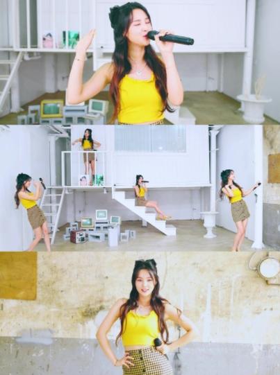 공개된 영상 속 황우림은 상큼한 옐로우 패션으로 눈길을 끌었다. 황우림은 잘록한 개미허리가 돋보이는 크롭 민소매 상의에 늘씬한 라인을 강조한 초미니 스커트를 착용해 과즙미 가득한 매력을 발산하고 있다.