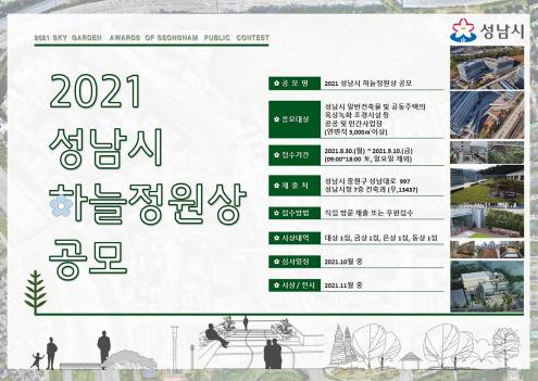 시는 지난해 이 공모로 LH 판교 제2테크노밸리 기업성장센터(대상), 서현도서관(금상), 중앙공설시장(은상), 위례 한화 오벨리스크 센트럴스퀘어(동상)를 선정해 각 건축물 건축주, 설계자, 시공자에게 ‘제2회 성남시 하늘정원 상장’을 줬다.