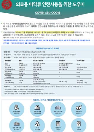 안전사용 도우미 서한의 내용은 의료용 마약류 ADHD치료제 ‘메틸페니데이트’ 현황에 대한 통계 분석 자료를 바탕으로 작성됐다.