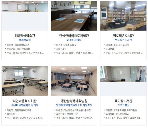 현재 성남시 ‘공간공유’ 참여 기관·시설은 황송·수정중앙노인종합복지관, 중앙동복지회관, 책이랑도서관 등 32곳이다.