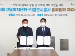 [뉴스시선집중, 박광옥기자] 의왕도시공사는 지난 22일 의왕도시공사 본사 회의실에서 의왕고용복지플러스센터와 지역 일자리 창출 및 사회적 가치 구현을 위한 업무협약을 체결했다고 밝혔다.