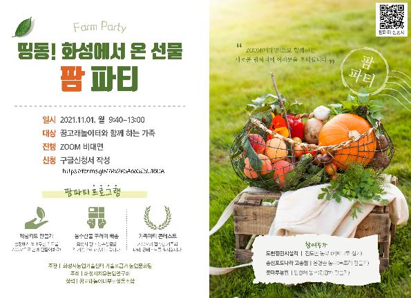 한편, 시는 오는 11월 1일, 치유농업연구회, 꿈고래놀이터부모협동조합과 함께 줌(ZOOM) 앱을 활용한 비대면 팜파티를 열 예정이다.