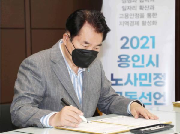 이 협약에는 용인시를 비롯해 용인시의회, 고용노동부 경기지청, 한국노총 용인지역지부, 용인상공회의소 등 5개 기관이 참여했다.