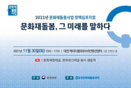 [뉴스시선집중, 최현숙기자] 문화재청이 주최하고 중앙문화재돌봄센터에서 주관하는 ‘문화재돌봄사업 정책심포지엄’이 ‘문화재돌봄, 그 미래를 말하다’라는 주제로 오는 30일 오후 13시부터 대전 케이더블유(KW)컨벤션센터에서 개최된다.
