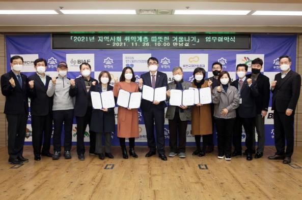 [뉴스시선집중, 박동혁기자] 부천시는 지난 26일 부천희망재단, 원미·소사·나눔 지역자활센터, 동 지역사회보장협의체와 ‘지역사회 취약계층 따뜻한 겨울나기 사업’ 업무 협약을 체결했다.
