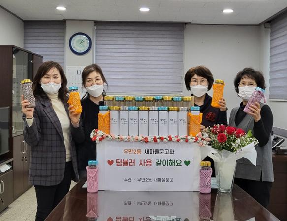 정유선 우만2동 새마을문고회장은 “1회용 종이컵 대신 텀블러를 통해 생활 속 일회용품 줄이기에 앞장 설 것이며 우리 마을 환경 보호에 지속적으로 관심을 쏟겠다”라고 전했다.