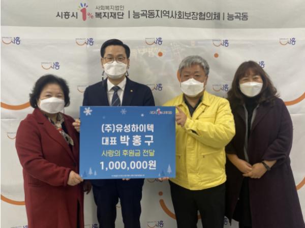 [뉴스시선집중, 이학범기자] ㈜유성하이텍은 지난 25일 능곡동 행정복지센터를 찾아 사랑의 후원금 100만 원을 전달했다.