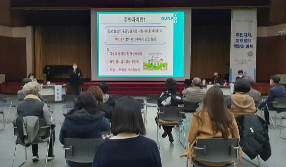 토론회는 ‘진정한 주민자치 기반 마련’이라는 주제로 이승호 궁내동 주민자치위원의 주제발표를 시작으로, 민정화 광정동 주민자치회 복지교육분과장의 ‘주민자치 1년차의 활동 돌아보기’ 발표 등으로 이어졌다.