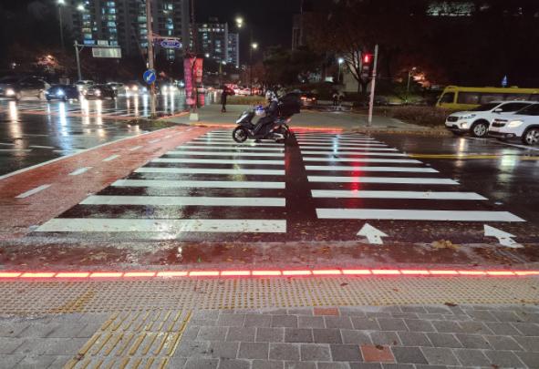 또한 교통사고가 잦은 교차로에는 보행자 사고 방지를 위한 ‘바닥신호등’과 밤이나 기상이 악화했을 때도 쉽게 횡단보도를 알아볼 수 있는 ‘보행자 활주로형 유도등’이 설치됐다.