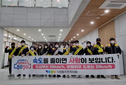 이날 주민자치위원과 마을 주민 등 20여 명은 다정동 중심상가 인근에서 피켓과 현수막을 들고 안내문을 나눠주며 5030속도 준수 캠페인을 벌였다.