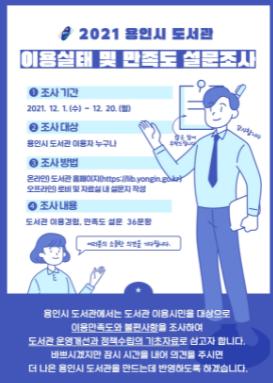 [뉴스시선집중, 이학범기자] 용인시가 12월 1일부터 20일까지 ‘2021 용인시 도서관 이용 실태 및 만족도 설문조사’를 실시한다.