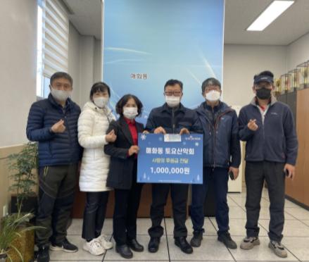 [뉴스시선집중, 이학범기자] 매화동 행정복지센터는 지난 27일 매화동 토요산악회 동호회원들이 한마음 한뜻으로 기부한 후원금 1백만 원을 기탁 받아 매화동 지역사회보장협의체의 저소득층을 위한 사업에 사용하기로 했다.