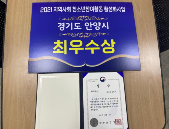 [뉴스시선집중, 박광옥기자] 안양시가 여성가족부 주관‘2021년 지역사회 청소년참여활동 활성화사업’공모에서‘Youth 아고라 시즌2’로 최우수상을 수상했다고 14일 밝혔다.