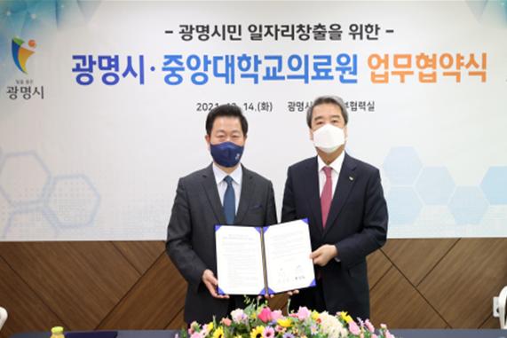 [뉴스시선집중, 박광옥기자] 광명시는 14일 중앙대학교의료원과 내년 3월에 개원할 중앙대학교광명병원 인력 채용 시 지역 주민 우선 고용 등 시민 일자리 창출을 위한 업무협약을 체결했다.