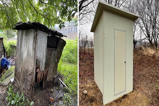 이번 지원가구는 독거노인으로 올해 평동행정복지센터 사례관리 대상자로 선정된 가구이며 나무로 만든 실외 간이화장실을 이용하고 있어 안전상의 문제 등 어려움을 겪고 있는 대상자였다.